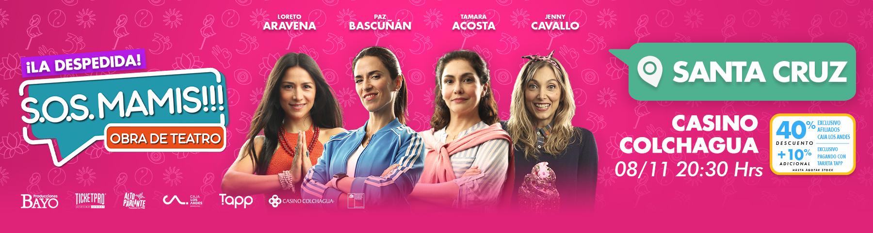A finales de abril 2023 se estrenó en Talca la obra de teatro ""S.O.S. MAMIS OFF LINE"", iniciando un nuevo desafío, pero ahora sobre las tablas y está vez fuera de la capital, recorriendo las principales ciudades del territorio nacional con más de 60 funciones y más de 50.000 espectadores la han visto de Arica a Punta Arenas, incluyendo Isla de Pascua, logrando ser todo un éxito.