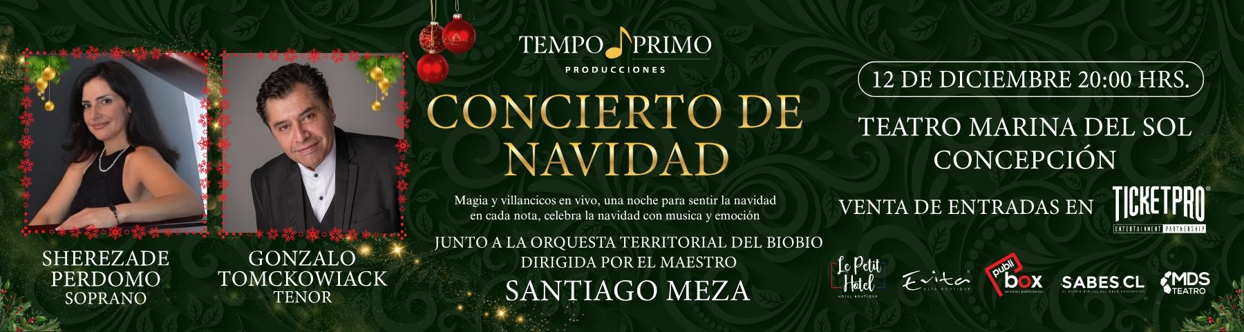 Celebra la Navidad con un espectáculo único que une tradición y emoción. La soprano Sherezade Perdomo y el tenor Gonzalo Tomckowiak se presentan junto a la Orquesta Territorial del Bío Bío, bajo la dirección del maestro Santiago Meza, para ofrecer una velada inolvidable.