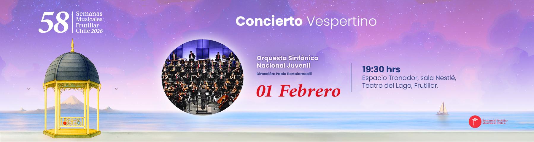ORQUESTA SINFONICA NACIONAL JUVENIL CONCIERTO VESPERTINO - FRUTILLAR - Domingo 01 de Febrero / 19:30 hrs