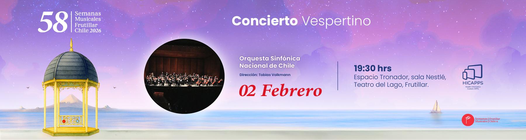 ORQUESTA SINFONICA NACIONAL DE CHILE CONCIERTO VESPERTINO - FRUTILLAR - Lunes 02 de Febrero / 19:30 hrs