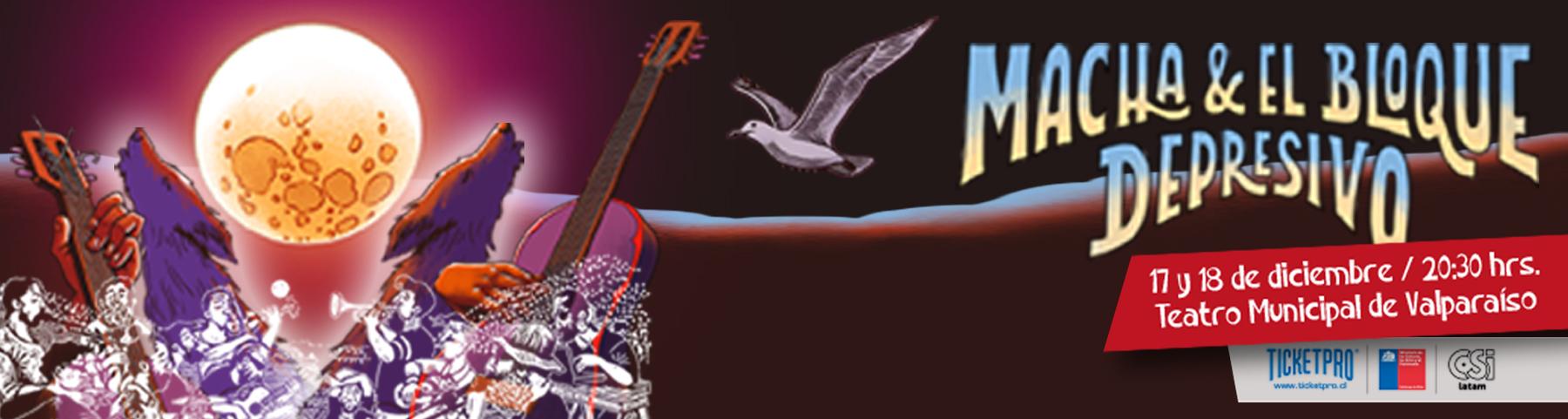 Los sones y las emociones de un continente llegan al escenario con una banda entregada a las baladas, los boleros, los valses y las canciones melódicas del sentir latinoamericano. Macha y el Bloque Depresivo hacen una invitación a reconocer las canciones de amor y dolor que afloran después de la fiesta, cuando las luces se apagan y avanza la noche. Es música que se quedó en la memoria popular, en el eco de canciones que viven eternamente repitiendo sus sonidos y nos vienen a hablar de nuestro pasado y nuestros antepasados, convertidos en una columna de melodía, armonía y sentimiento. El paisaje emotivo de todo un continente cabe en esta sintonía. El itinerario pasa por la emoción auténtica de los valses peruanos, por el sabor genuino del son cubano, por las cumbres del bolero puertorriqueño y mexicano y por las baladas de la radio. Es un recorrido americano de cariño, desamor, desvelo y desesperación, todo en un mix que mira al Pacífico, al Atlántico, al Caribe y a sus puertos y ciudades. Macha y el Bloque Depresivo nació como un complemento natural para Chico Trujillo, la banda de cumbia que encabeza Aldo Asenjo, el Macha. Desde este puerto querido donde salí a la vida, canta Macha en “Fuera de mi vida”, y en efecto el origen se remonta al aprendizaje iniciado en la geografía natal del cantante, en Villa Alemana, ciudad de la región de Valparaíso, el puerto principal en Chile. Desde ahí se proyecta a los cancioneros continentales y más allá, hacia melodías europeas que llegaron por la radio o los discos. Así se vienen a encontrar sin fronteras Silvio Rodríguez, Sandro, Víctor Jara, Zambo Cavero, Matia Bazar, José José, Chavela Vargas, el Trío Matamoros o el cantor porteño Jorge “Negro” Farías, hermanadas y hermanados por el afecto común. El mayor trovador cubano, un astro pop argentino, un referente afroperuano, una banda italiana de los años ochenta, unos emblemas del repertorio mexicano y una escuela del son cubano son parte de la misma celebración.