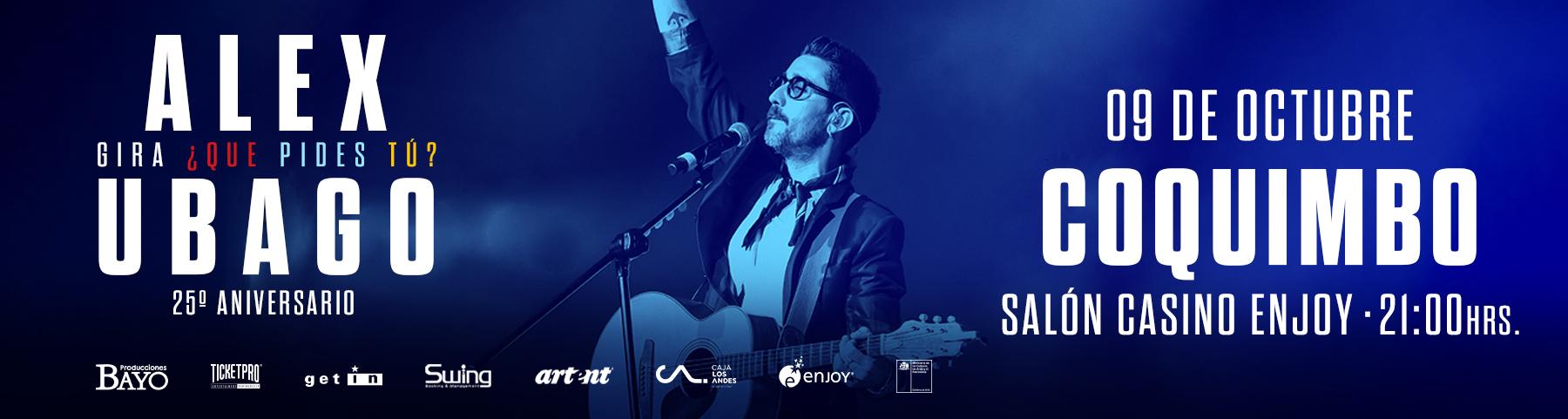 ¡No pierdas la oportunidad de ser parte de esta noche única en un concierto que jamás olvidarás en el Casino Enjoy Coquimbo y disfruta de la magia de ALEX UBAGO en vivo!