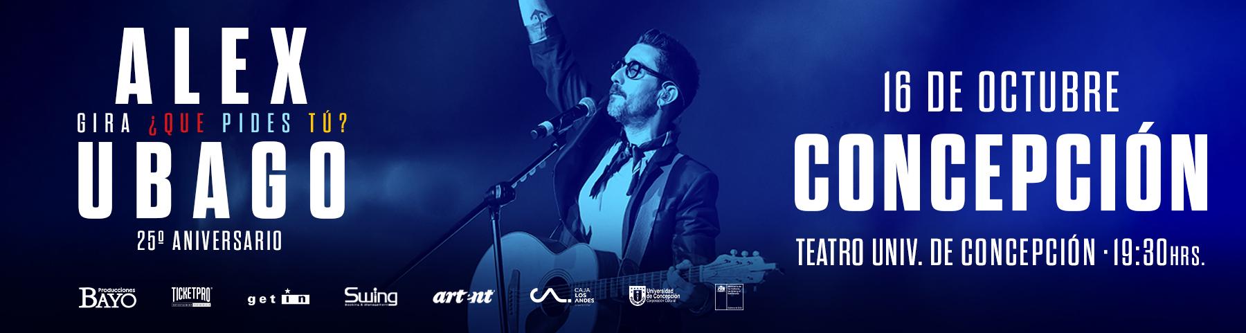 ¡No pierdas la oportunidad de ser parte de esta noche única en un concierto que jamás olvidarás en el Teatro de la Universidad de Concepción y disfruta de la magia de ALEX UBAGO en vivo!