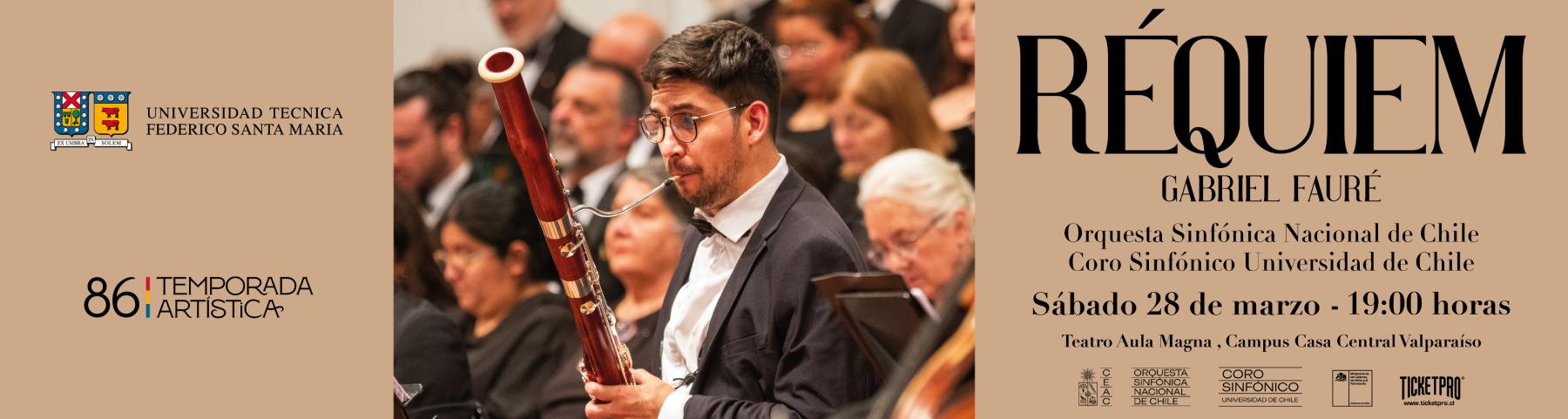 "REQUIEM" GABRIEL FAURE - ORQUESTA SINFONICA NACIONAL DE CHILE Y CORO SINFONICO DE LA U. DE CHILE - VALPARAISO - Sábado 28 de Marzo / 19:00 Hrs.