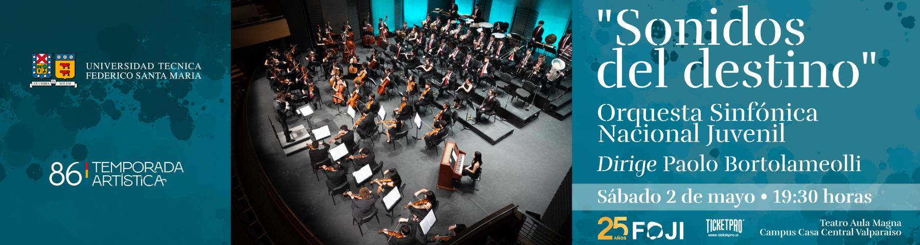 "SONIDOS DEL DESTINO" ORQUESTA SINFONICA NACIONAL JUVENIL - VALPARAISO - Sábado 02 de Mayo / 19:30 Hrs.